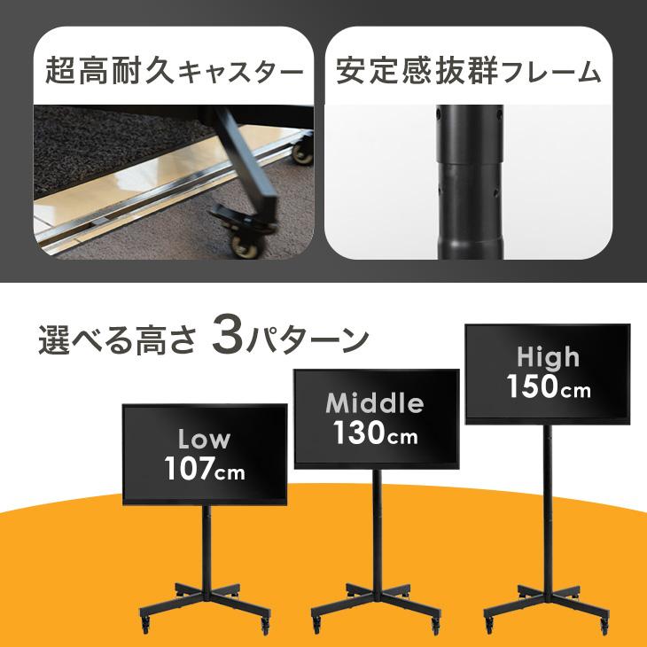 テレビスタンド 移動式 壁寄せ テレビ台 ハイタイプ おしゃれ ロータイプ TVスタンド キャスター付き キャスター テレビボード 会議 高さ調節