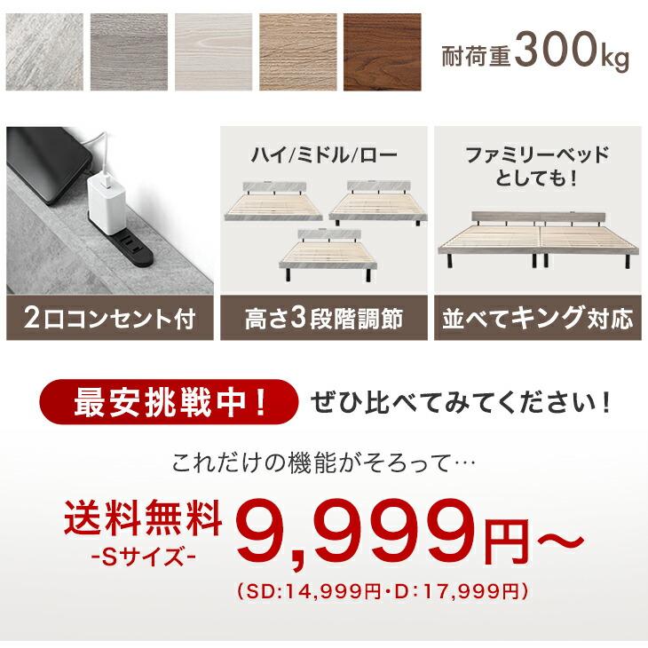 3日+5% ベッド シングル すのこベッド シングルベッド ベッドフレーム 宮付き 高さ調節 コンセント付 木製 ベットフレーム すのこ ベット おしゃれ