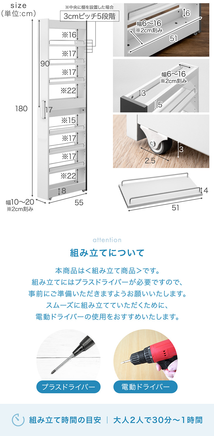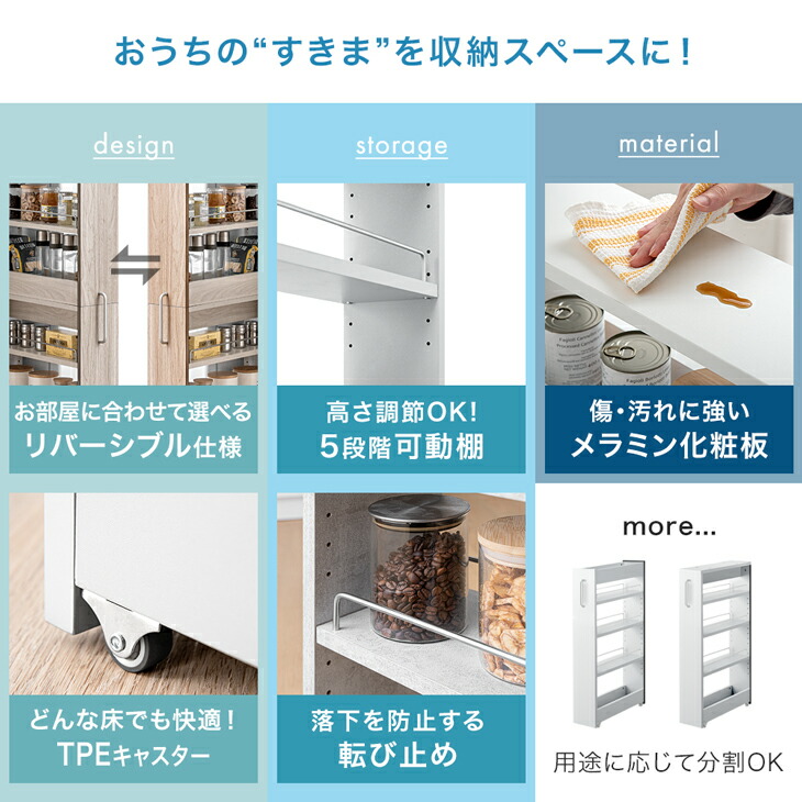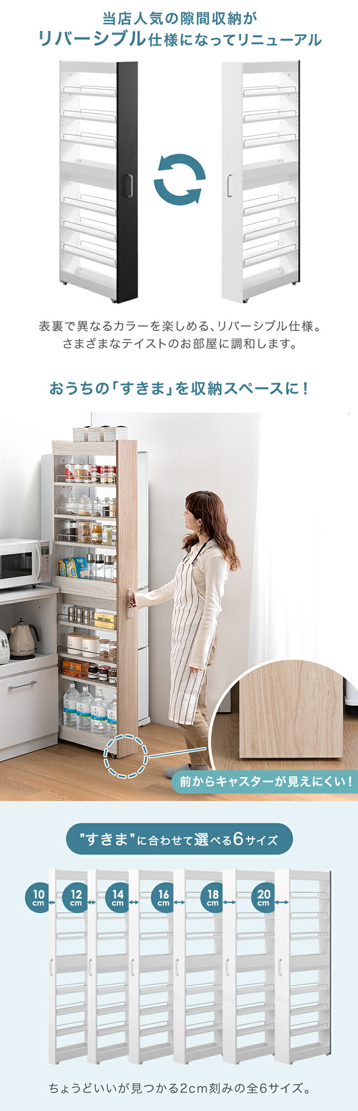 隙間収納 キッチン スリム ハイタイプ リバーシブル 49600453 49600454 49600455 49600456 49600457 冷蔵庫 隙間収納ラック キッチン収納