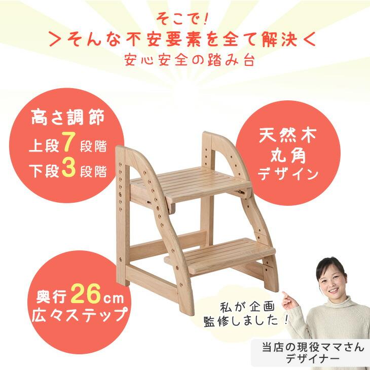 3日+5% 踏み台 子供 高さ調節 7段階 天然木 おしゃれ ステップ台 ステップ 足置き台 ふみ台 キッチン 洗面所 踏台 木製