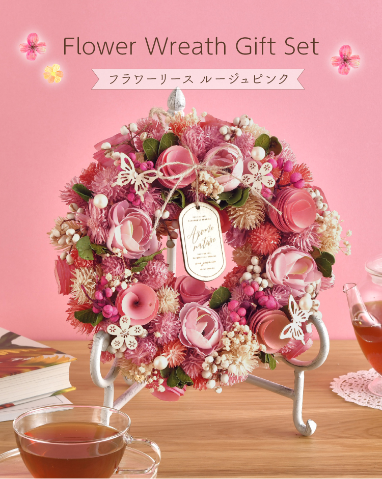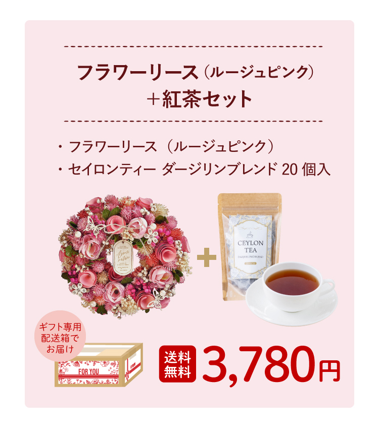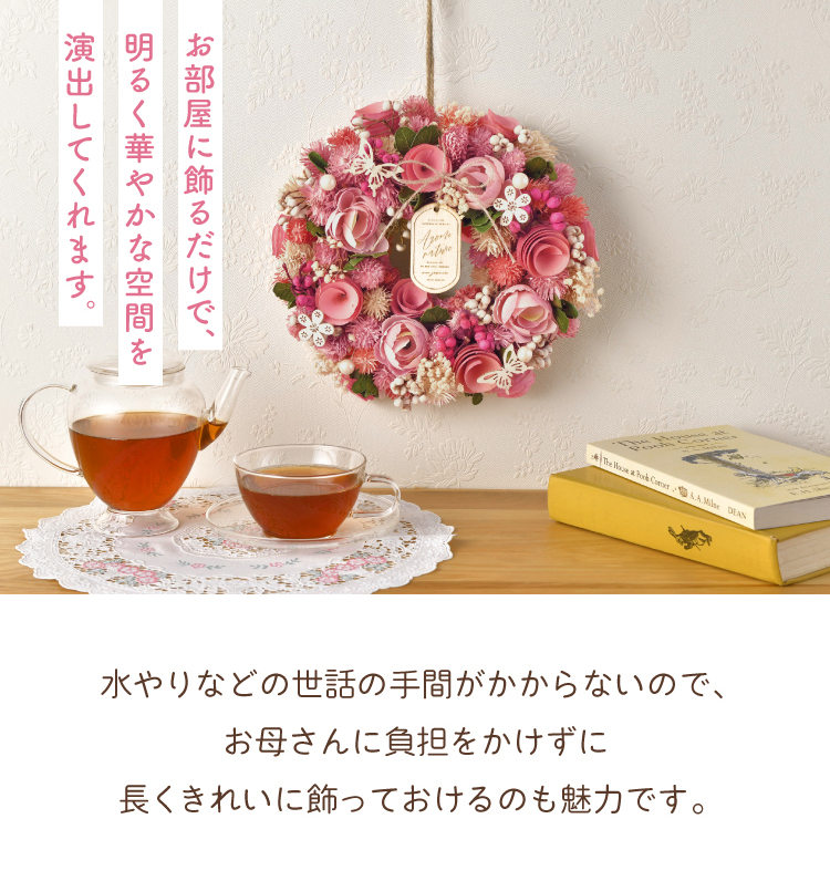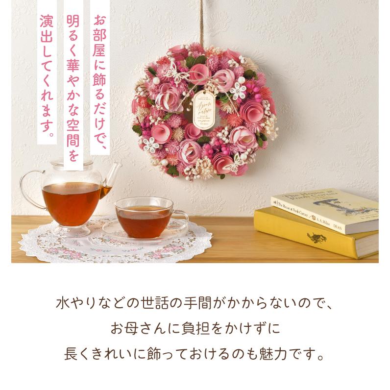 母の日 ギフト プレゼント 2026 花 ドライフラワー リース ギフト プレゼント プリザーブドフラワー アレンジ 40代 50代 60代 70代 フラワーリース 紅茶セット