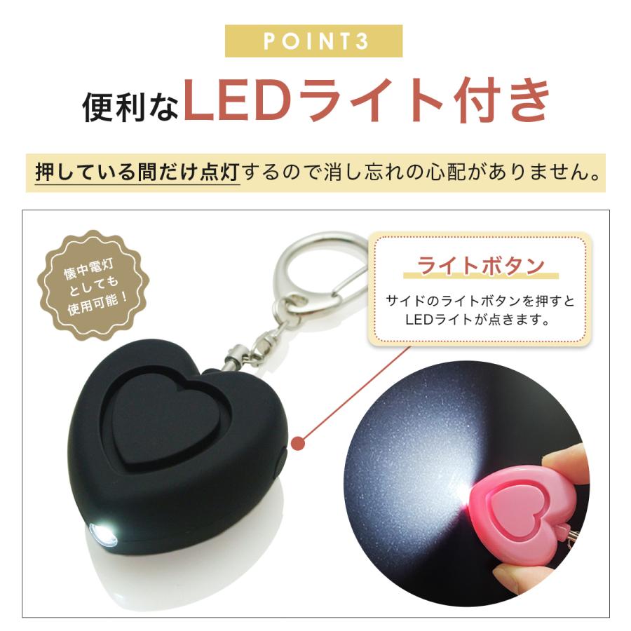 電池式 防犯ブザー 防犯アラーム 子供 小学生 女の子 かわいい ハート 130dB 大音量 LEDライト 防犯グッズ ライト付き 超小型 ボタン電池 爆買
