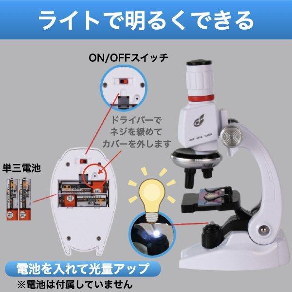 乾電池をセットすれば、ライトを点灯でき観察物が見やすくなります。