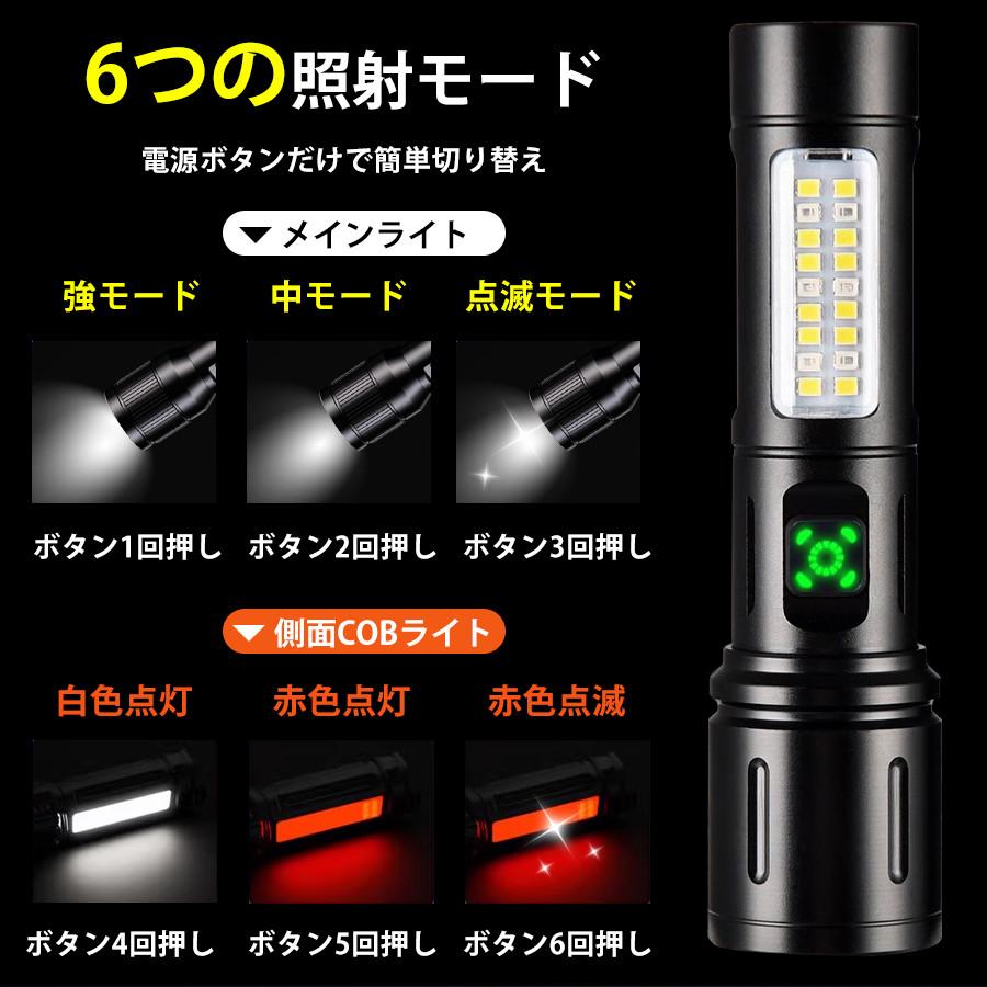 【期間限定価格】懐中電灯 ハンディライト 強力 充電式 小型 高輝度 6モード調光 ズーム機能 3500lm 500m LEDライト 防水 停電対策 アウトドア 作業