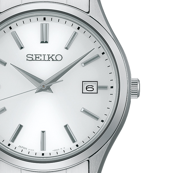 日付付きのシンプルなソーラーウオッチで着用シーンを選びません。10気圧防水、耐磁時計(JIS1種)にすることで、日常使いにも最適です。胴横からかん先へとつながる繊細な斜面を持つ流線形の美しいフォルムのケースデザインにすることで、ワンランク上の見栄えを実現しました。