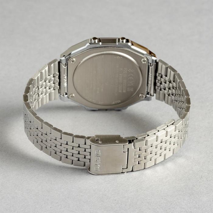 | カシオABL-100WEは、1980年代の名機A168WAのデザインを継承しつつ、現代的な機能を加えたレトロモダンなデジタルウォッチです。ヘアライン加工が施された多列構造のメタルバンドは、イルミネーションのように光を反射。鏡面仕上げのメッキケースと組み合わさることで、高級感と懐かしさを演出しています。スマートフォンとのBluetooth連携により、定期的に時刻を自動修正。右下ボタンによる手動修正も可能なため、常に正確な時刻を維持できます。歩数計は日々の歩数を記録するだけでなく、目標設定や達成グラフ表示にも対応。一定時間動かないと通知してくれる機能もあり、健康管理をさりげなく後押しします。液晶上部のグラフィックバーは、モードに応じて表示が変化するデザイン上のアクセントです。曜日はドットマトリクスで表示され、視認性と情報量を両立しています。残照機能付きLEDライトで夜間の視認性も確保。夜間に静止状態が続くと画面を自動オフにするパワーセービング機能も搭載し、バッテリー保護も配慮されています。レトロな魅力に便利さを添えたABL-100WEは、日々の装いにも自然になじみ、あなたの毎日を前向きにしてくれる一本です。 | |