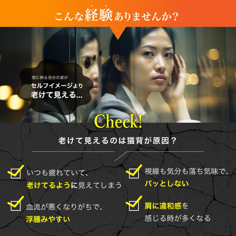 【巻き肩タイプ、背中が丸まるタイプの両猫背にも対応】