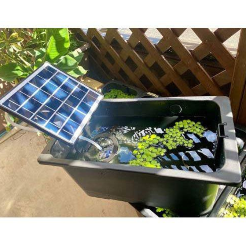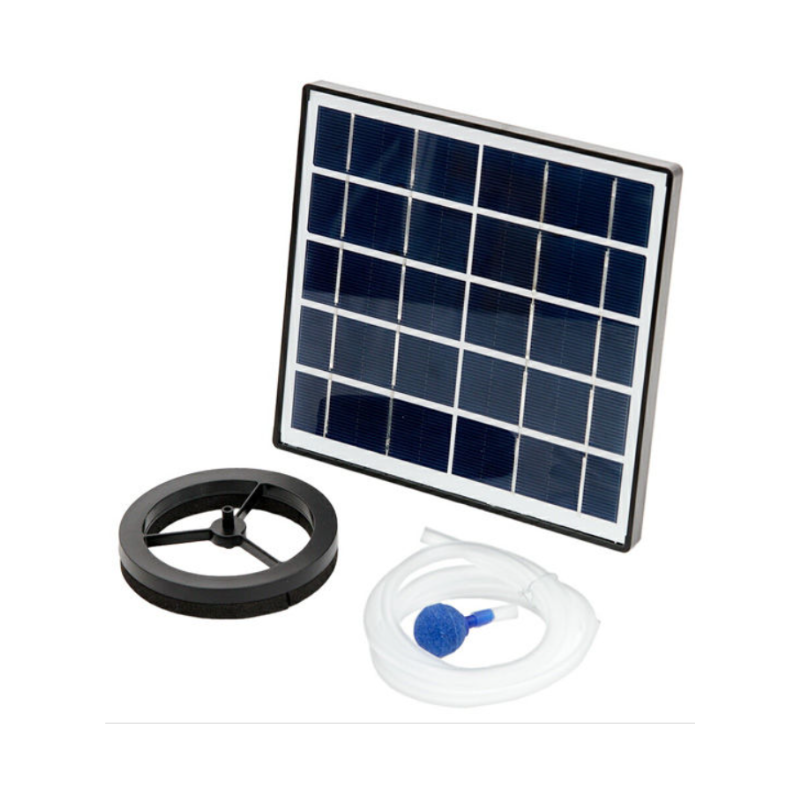 屋外飼育に最適なソーラーパネル一体型。水流からメダカを優しく守る「バブルガードリング」もセットになっています。