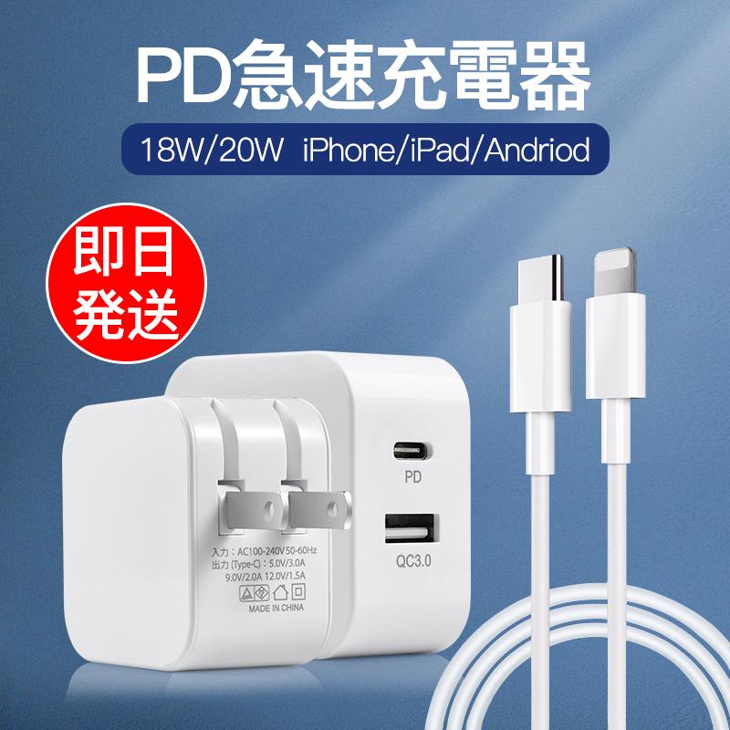 PD 30W 充電器 iPhone 20W AC アダプター Type-C タイプ C 折り畳み Android iPad USB A QC3.0 ライトニング Lightning スマホ 携帯 アイフォン ケーブルセット
