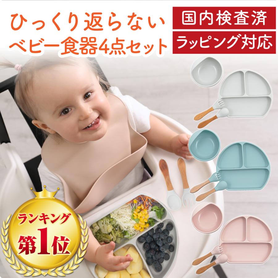 吸盤付きのプレートとボウルは、テーブルに固定されるのでひっくり返さずに食事ができます。
