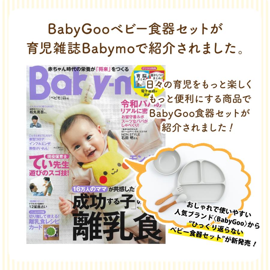 プレート:直径約20cm、短辺直径:約18.5cm、深さ:約3.5cm ボール:直径約12cm、深さ:約6.5cm ※最長部分約8.5cm スプーン・フォーク:14cm 素材:シリコン、スプーン・フォーク:けやき 耐冷:-40℃、耐熱:240℃ ※食洗機:上段にて使用可能