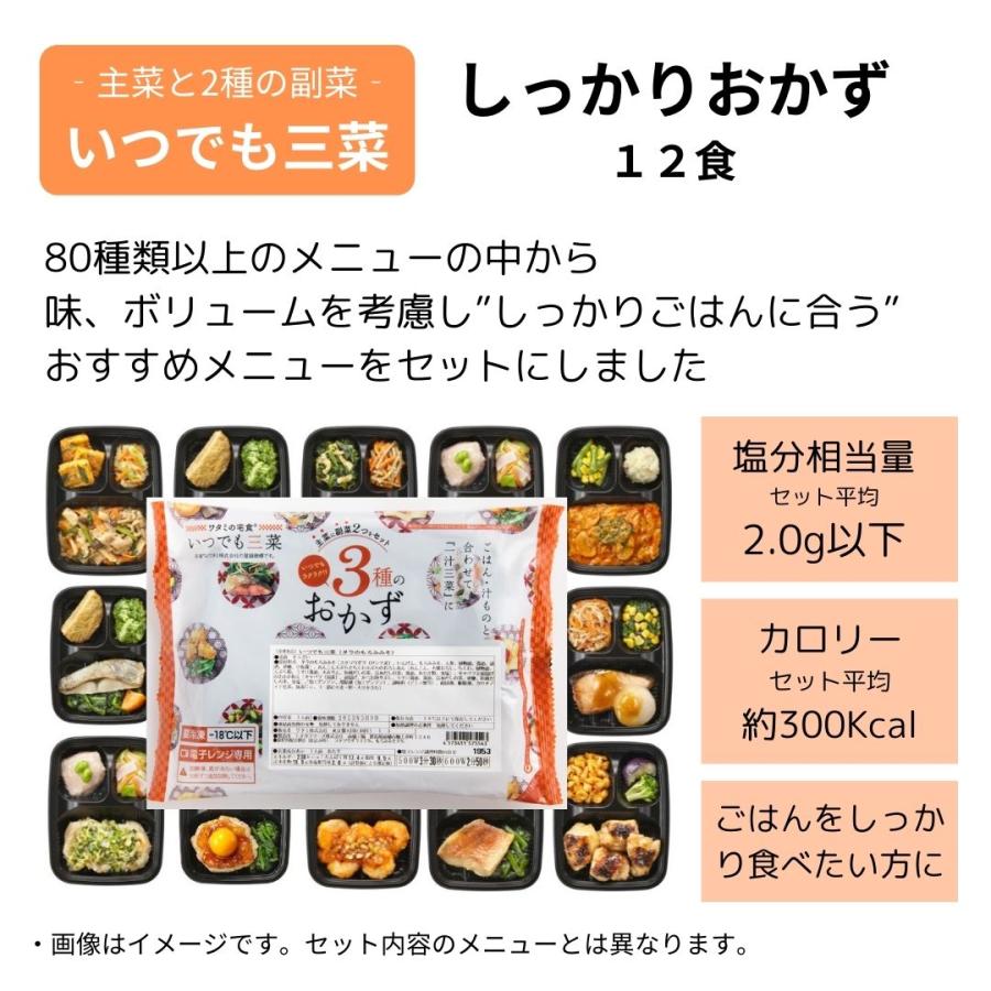 手軽においしく!バランスのとれたお食事をしっかりと! 専任の管理栄養士が献立を設計した「いつでも三菜」シリーズ。冷凍のお惣菜だから、いつでも好きな時にレンジでチンするだけで、手軽に食べられるのが大きな魅力! 忙しい時や料理するのに疲れた時、また、ご高齢者や単身赴任の方など料理が負担になってしまう方々の味方になってくれます。 お届け後冷凍で長期保存ができるのも、冷凍惣菜のいいところ。 都合の良い時にまとめて受け取りストックしておけば、困ったときに大活躍してくれますよ。・名称:そうざい・内容量:12食 ・原材料:商品ラベルに原材料(アレルギー情報含む)記載・保存方法:商品がお手元に届いたら、冷凍庫にて−18℃以下で保存してください。 中身が乱れてしまうため、立てて保管することはご遠慮ください。一度解凍したものは再び冷凍しないでください。また、必ず賞味期限内にお召し上がりください。・賞味期限:(商品に記載)2ヶ月以上の長期保存可・製造者:ワタミ株式会社 東京都大田区羽田1−1−3