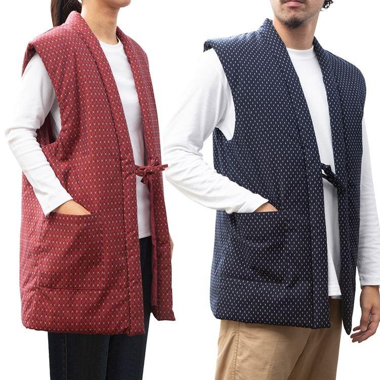<送料無料>綿入れちゃんちゃんこ 男女兼用 ドビー織 あられ柄 ベスト ポンチョ 袖なし 半纏 袢纏 半天 メンズ レディース 防寒 ギフト プレゼント 日本製 久留米産