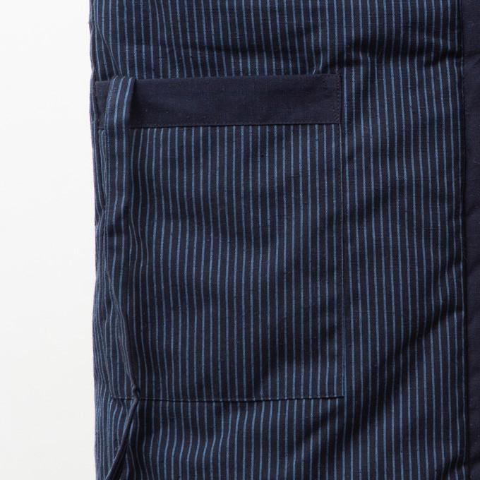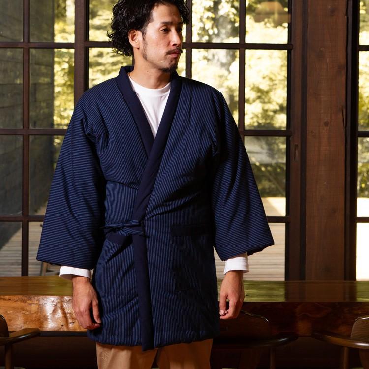 商品名:日本製 半纏 メンズ 久留米織 綿入れ 中綿 紬織 かつお縞 男性用 はんてん 中綿 おしゃれ 防寒 暖かい どてら 冬