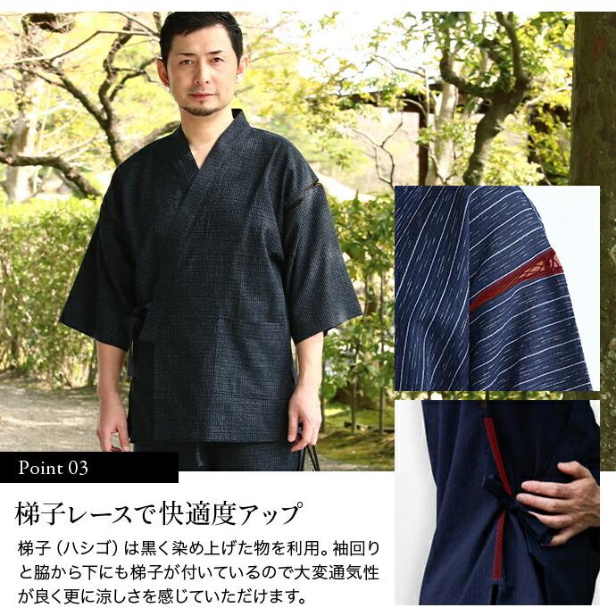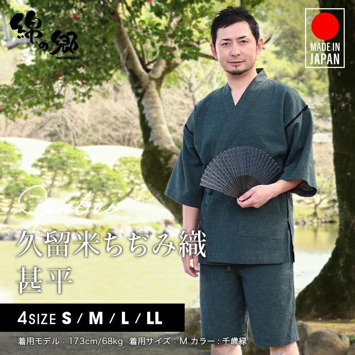 日本製 甚平 メンズ 男性用 久留米織 じんべい ちぢみ織 夏 上下 セット 浴衣 涼しい おしゃれ 父の日 敬老の日 ギフト 贈り物 プレゼント