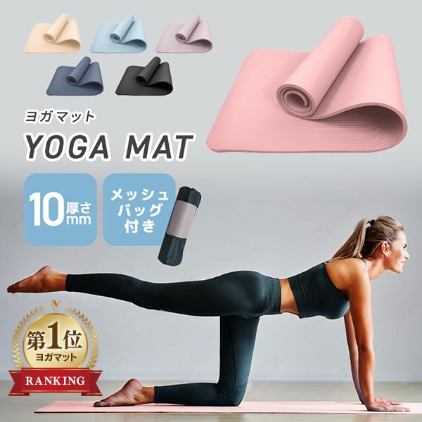ヨガマット 10mm 厚手 幅広 ケース 収納ケース付き ストレッチ 滑らない ストレッチマット 1cm 防音 衝撃吸収 ピラティス ホットヨガ トレーニング