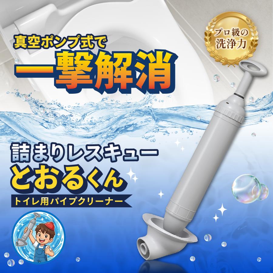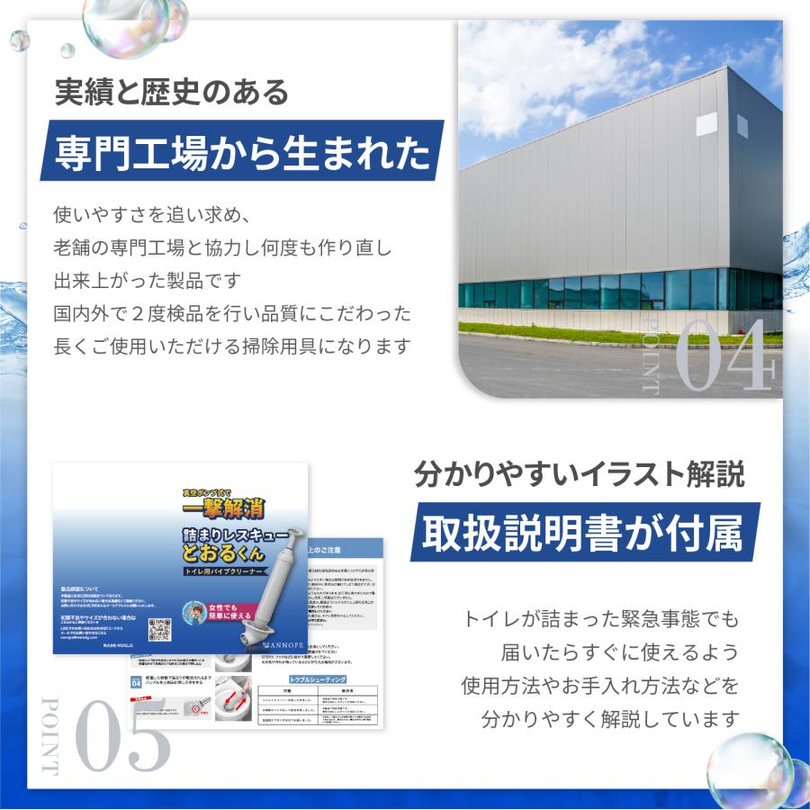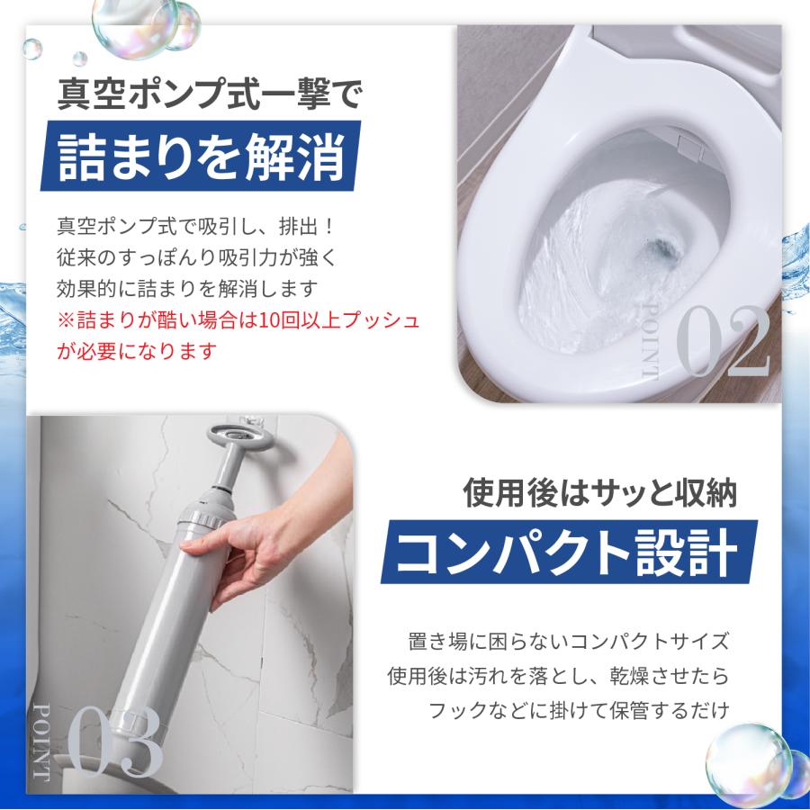 【まるでトルネードスクリュー 真空式ポンプ】真空ポンプ方式で水を吸引し、排出するため、従来のすっぽん(ラバーカップ)に比べて5倍の吸引力があります。渦を巻くように排水管の詰まりの解消する、それはまるでトルネードスクリュー!