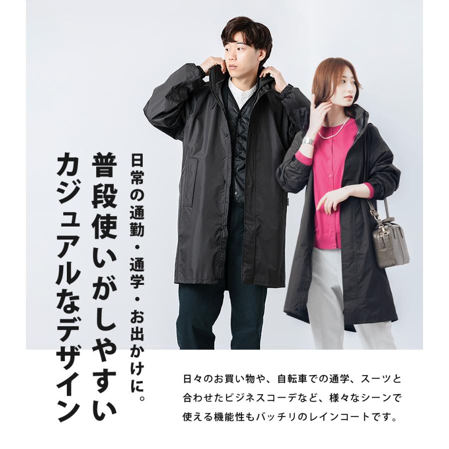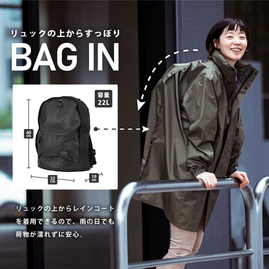 | 商品説明 | 背中についた大きなマチのおかげで中にバッグを背負えるレインコート。ビジネスや通学などに使いやすいシンプルでカジュアルなデザイン。フードとボディ部分を分離した「回転フード」と付属のバイザートップが取り付けできる「バイザーシステム」を搭載しており、機能性もバッチリ。別売りのレインパンツと組み合わせて、リュック対応のレインスーツとしても使っていただけます。日常の通勤・通学・お出かけになどにピッタリの、都会で暮らすすべての人に安全・快適を提供する一着です。 |