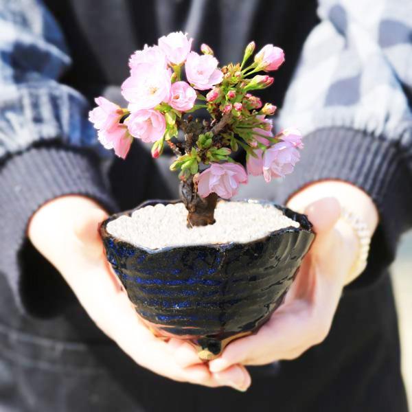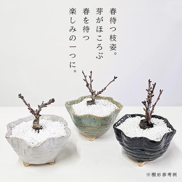 桜盆栽 鉢色選べる:ミニ一才桜(旭山桜)*(信楽焼花型小鉢)鉢植え 鉢花 (2026年春開花予定)bonsai