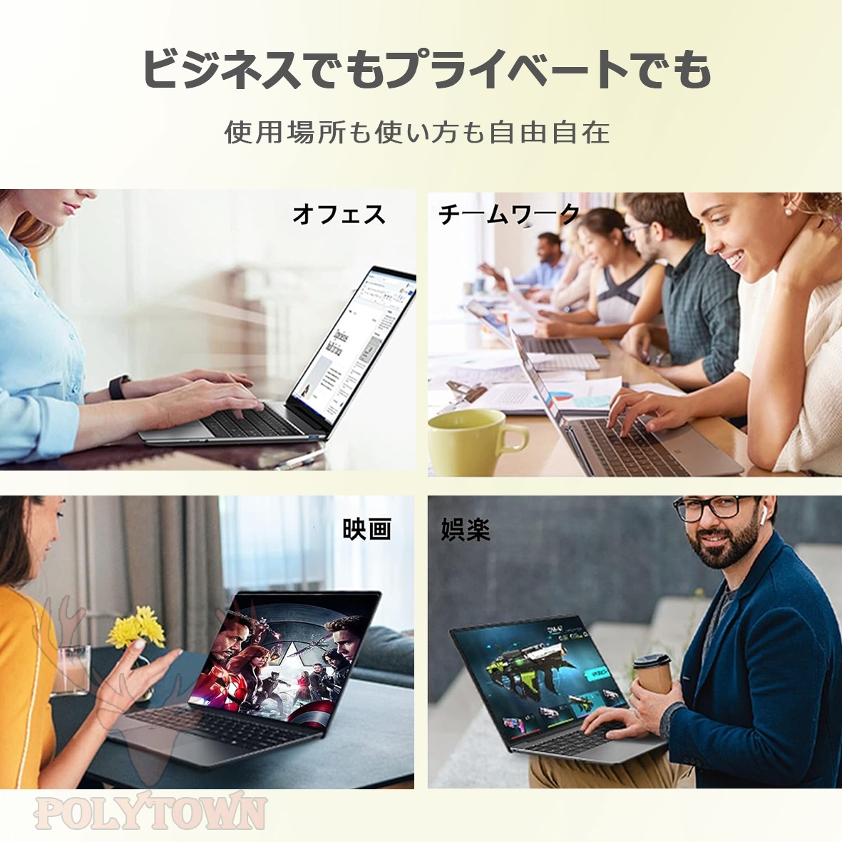 ノートPCはDDR4 16GB RAMと高速512GB SSDを搭載しており、高性能で低消費電力のパルス周波数最大2.90GHzのJasper Lake-N5095(6Mキャッシュ、4コア4スレッド)を搭載。インターネットやWord・Excelなどのマルチタスクがより高速に処理できてカク付きのないスムーズな操作を実現します!高速の操作を実現しながら、発熱もちゃんと抑える高回転速の静音冷却フアンも搭載されているため、熱による引き起こされるフリーズ、シャットダウン、ブルースクリーンなどの問題が前世代N4105より大幅に削減しオフィス作業や個人用にコスパ最高のlaptopです。