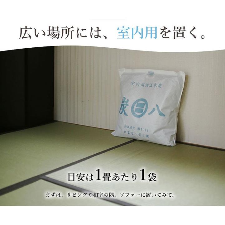 室内に置いたり、押入れやベッドの下に使用します。チップ状の炭を二重不織布で包んでいます。