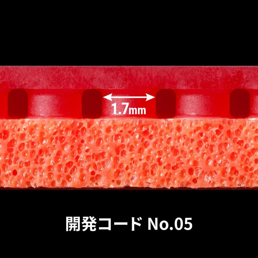 テナジー シリーズの高性能をそのままに、さらなるコントロール性能と安定性を追求したのがテナジーFX シリーズです。回転性能に優れた“開発コードNo.05”のツブ形状のシートに、「スプリング スポンジ」を軟らかく軽量化して組み合わせた『テナジー05FX』は、回転とコントロールを高いレベルで両立。強烈なスピンと安定性を求める選手にお勧めです。