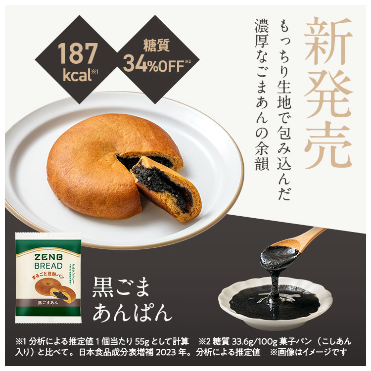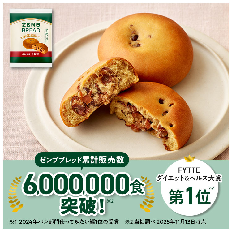 | 商品説明 | 累計販売食数2000万食(25年5月1日時点)を突破した「 ZENBヌードル ( ゼンブヌードル )」と同じ、スーパーフード黄えんどう豆を使った、まるごと豆粉パン「ゼンブブレッド」。 【栄養価の高い スーパーフードでつくった まるごと豆粉パン】 栄養バランスに優れたスーパーフード、黄えんどう豆をうす皮までまるごと使用。プロテインの原材料にも使われる黄えんどう豆は、小麦や白米に比べて糖質控えめで、鉄・亜鉛・カリウムもたっぷり。プロテインの原料にも使われています。古くから北欧やギリシアなどで、スープやサラダとして食べられてきた伝統的な食材で、最近では植物性たんぱく質が摂れる食材として世界中で注目されています。さらに小麦 (強力粉)や 精白米 (米)と比べて糖質控えめなところも黄えんどう豆が優れているポイントです。 【糖質オフ*1&グルテンフリー*2】 余計なものは加えず、素材のおいしさを活かしました。小麦粉不使用*2 、卵、バター、乳製品などの動物性原料も加えていません*2 。てんさい糖を使用しています。( *1 いつものパンに比べて26%オフ ゼンブブレッド7品糖質量(100gあたり):24.8〜38.8g。くるみ&レーズン:くるみパン・ぶどうパン平均、カカオ・紅茶&オレンジ・金時豆:菓子パン(あんなし)、きなこあん・黒ごまあん:菓子パン(こしあん入り)と比べて。日本食品成分表増補2023年。3種の雑穀:食パンと比べて。日本食品標準成分表2015年。分析による推定値。*2: 本製品はグルテン濃度を10ppm以下で管理しています。製造工場等では、特定原材料8品目中、くるみ・小麦・卵・乳成分(金時豆・黒ごまあんはくるみ・小麦)を含む製品も生産しています。これらにアレルギー症状のある方は、医師にご相談ください。) 【ダイエット中・腸活中の栄養補給に】 ゼンブブレッドはいつものパンより、糖質26%オフ*、食物繊維4.8倍*1、ビタミンB1 2.7倍*1 、鉄2.2倍*1 、たんぱく質(プロテイン)入り。いろいろな栄養がとれるのに、1袋190kcal*3以下。常温で保管出来て袋を開ければすぐ食べられるので、毎日の朝食や間食に。*3 分析による推定値。1個当たり53g(きなこあんは56g、黒ごまあんは55g)として計算) 【食物繊維たっぷり】 食物繊維は1食あたり5g以上でいつものパンより4.8倍*1。おいしいだけじゃない、毎日続けたいヘルシーさです。 【1袋=食パン約1枚分 小腹がすいた時に】 ゼンブブレッドの重量は食パン(6枚切り)約1枚分*4。毎日の朝食、いつものパンの代わりにゼンブブレッドにするだけで、糖質26%OFFさらに不足しがちな栄養補給*5にもぴったり。(*4 食パン6枚切り 1枚57g、ゼンブブレッド 1個53g(きなこあんは56g) 、*5 食物繊維、鉄分のこと) 【ロングライフパン】 常温配送・常温保存OK。賞味期限は製造から4カ月〜5カ月。※ご注文から約30日以上の賞味期限の商品をお届けします。さらに、封を開けてそのまま、食べたいときにすぐに食べられる常備食として大活躍。 【ふっくら食感、やさしい味わい】 まるごと黄えんどう豆粉をメインにパン酵母と乳酸菌で発酵させて焼き上げる独自製法によって、ふっくら柔らかな食感、やさしいおいしさに仕上げました。 |