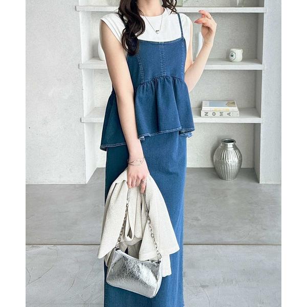 商品名:【S-LL展開】楽ちん!細見えデニムペプラムキャミワンピース