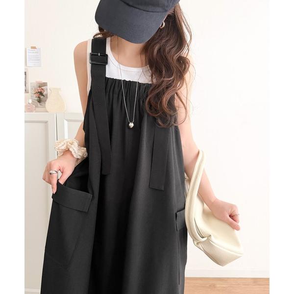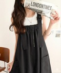 商品名:重ね着が楽しい♪着回し自在◎リネンライク素材胸元ギャザー&ポケット使いAラインジャンパースカート