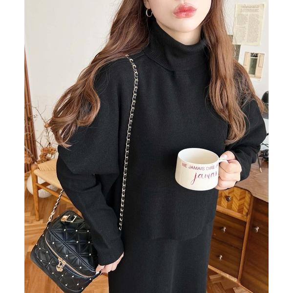 商品名:【累計販売枚数2万枚突破!】〈セットアップ〉タートルネックベスト&クルーネック長袖ニットワンピース(自宅で洗えるウォッシャブル加工)