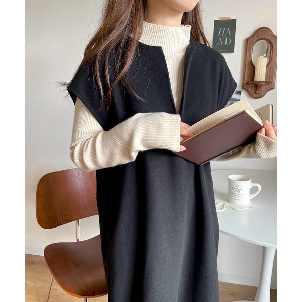 商品名:1枚で主役級。冬に大活躍!カフタン調サイドスリット圧縮ニットロング丈ジャンパースカート