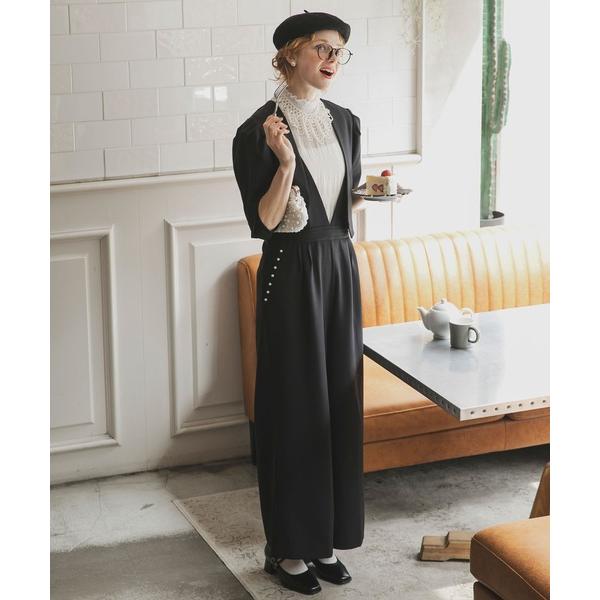 商品名:【BONLECILL noir】パワーショルダーノーカラージャケット&パール付きオールインワンパンツドレス セット