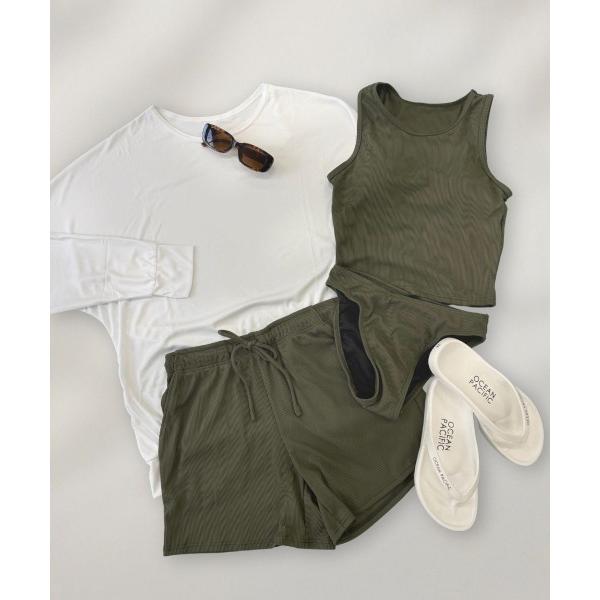 商品名:【OP:オーピー】レディースラッシュガード付き水着4点セット タンキニ リブ素材 ビキニ カップインキャミ 体型カバー 水陸両用