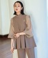 商品名:【オケージョン対応】オーガンジースリーブタックフレアトップス&シークレットゴム・スリムテーパードパンツ(ボウタイ付き) 結婚式 お呼ばれ パーティードレス 美脚効果《着用動画あり》