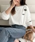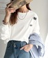 キーワード:tシャツ レディース クルーネック ワンポイント 刺繍 長袖 無地 ストリート スポーティー ドライブ ナチュラル ピクニック レジャー 秋 春 定番 別注 コラボ