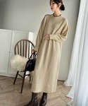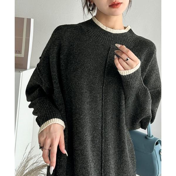 商品名:大人のリラックスムード。ふわもちミックスカラー配色ブークレーニットワンピース