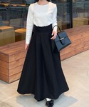 商品名:リブカットソー+ハイウエストフリンジツイードフレアスカートset