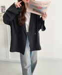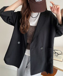 商品名:さらりと羽織る、大人の余裕。麻調シアー素材ドルマンスリーブオーバーサイズダブルテーラードジャケット(長袖)