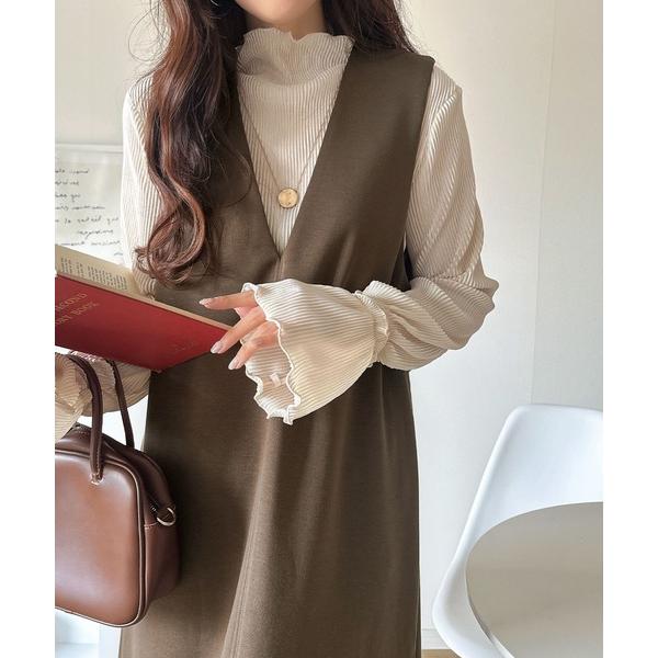 商品名:肉厚素材が気になるスタイルをカバー♪前後2wayダンボールハーフジップジャンプスカート(ロング丈)