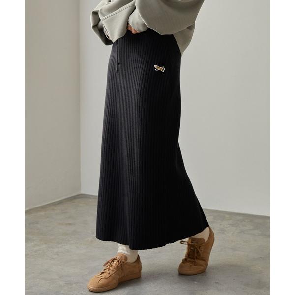 商品名:PENNEYS/ペニーズ 別注 THE FOX ロゴ ワンポイント刺繍 ストレッチリブニットIラインロングスカート