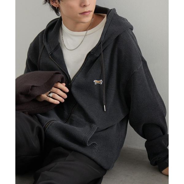 商品名:PENNEYS/ペニーズ 別注 THE FOX ロゴ ワンポイント刺繍 ヴィンテージ加工 ヘビーワッフル オーバーサイズジップパーカー