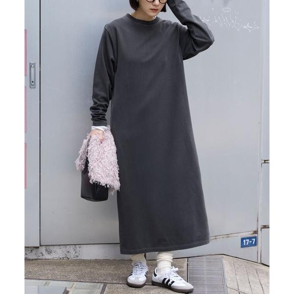 商品名:<アンチピリング/ウォッシャブル>ヴィンテージライク ダンボールカットソーロングスリットワンピース