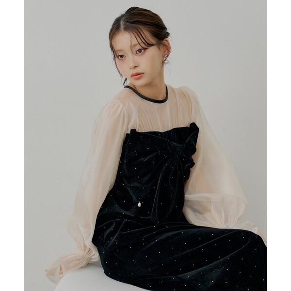 商品名:【SALON by Chico】配色シアーリボンベロアワンピース/オケージョン