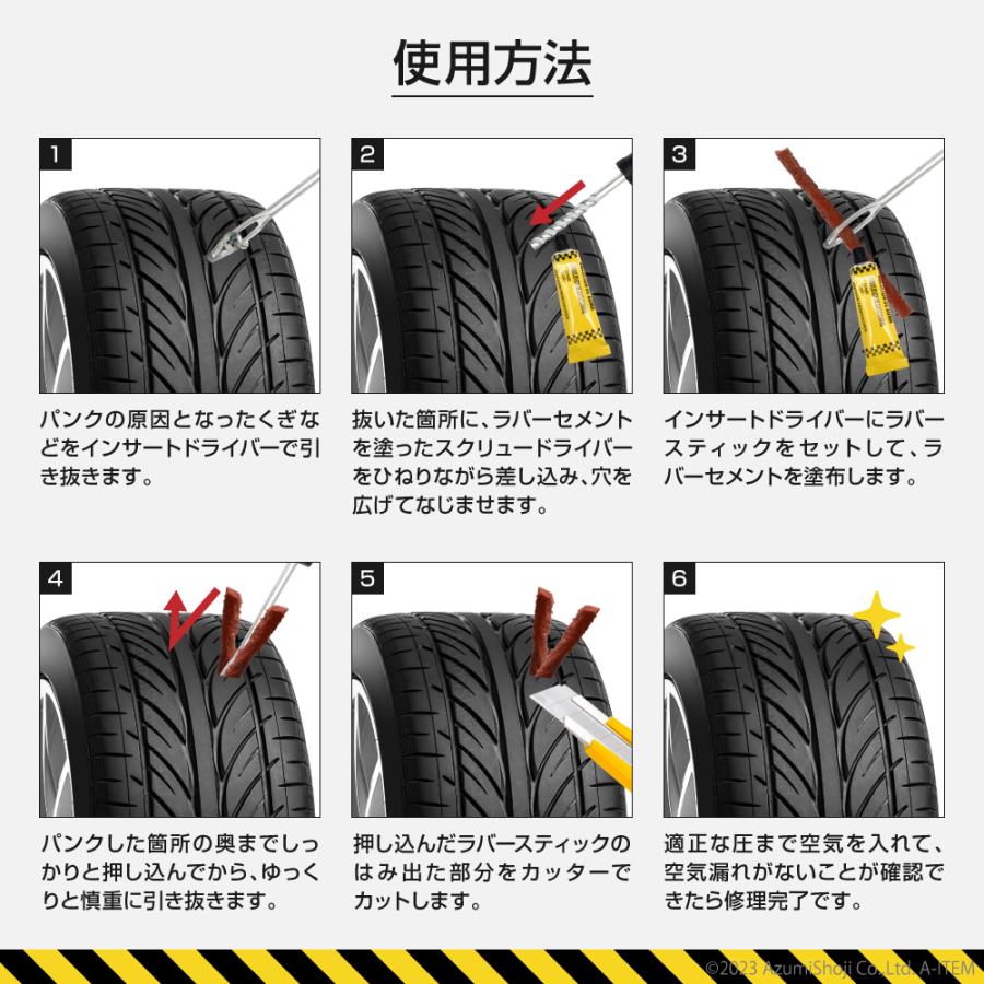 車パンク修理キット 自動車 専用パンク修理キット 自動車 パンク 修理 キット タイヤ チューブレス 補修 車 バイク 緊急用 非常用 携帯 3回分 車載工具 予備